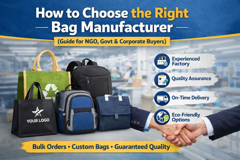 Choosing the right bag manufacturer is one of the most important decisions for NGOs, government projects, corporate companies, and B2B gift suppliers. The right partner ensures quality, timely delivery, and cost efficiency, while the wrong one can cause delays, losses, and reputational damage. In this guide, we’ll help you understand how to select the best bag manufacturer for your bulk order.